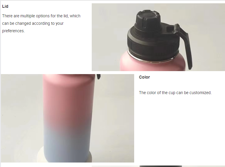 Чашка имеет емкость 32 унции и использует технологию распылительной окраски. Крышка черная и может сочетаться с разными крышками. Цвет крышки можно изменить.
